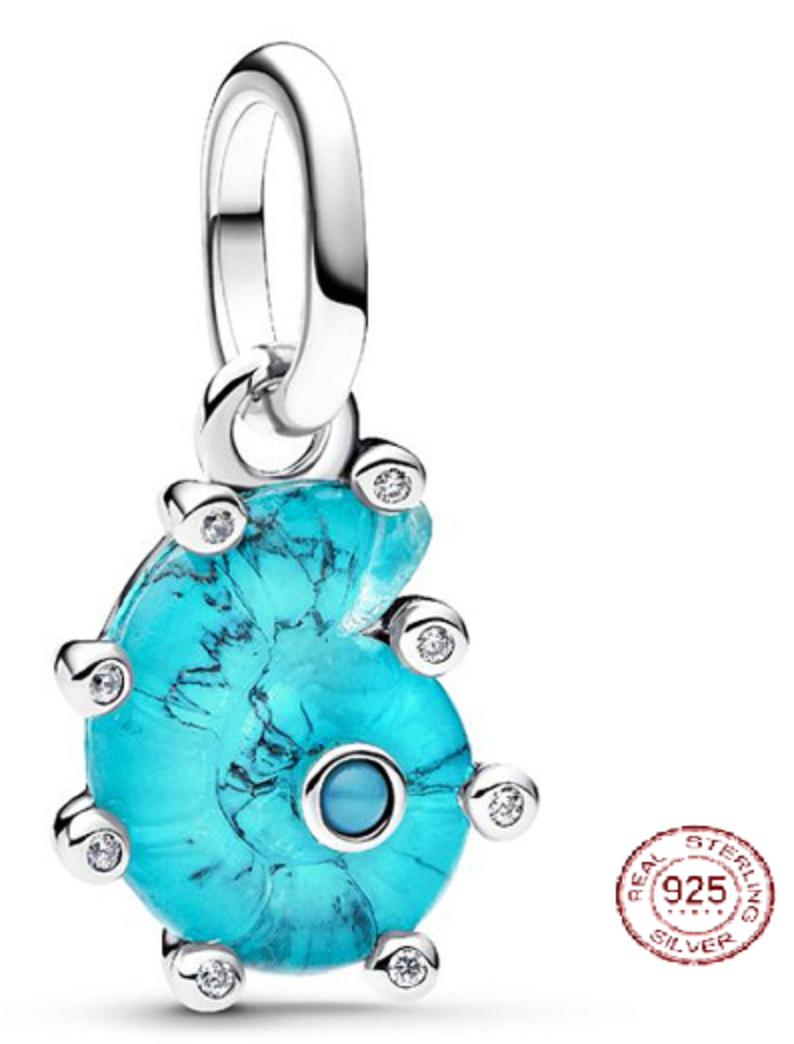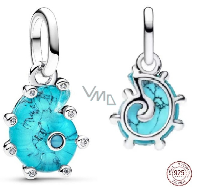 Charm Sterlingové stříbro 925 Mořský šnek z modrého skla Murano, přívěsek na náramek zvíže