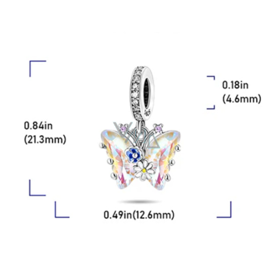 Charm Sterlingové stříbro 925 Motýl - květiny, přívěsek na náramek zvíře