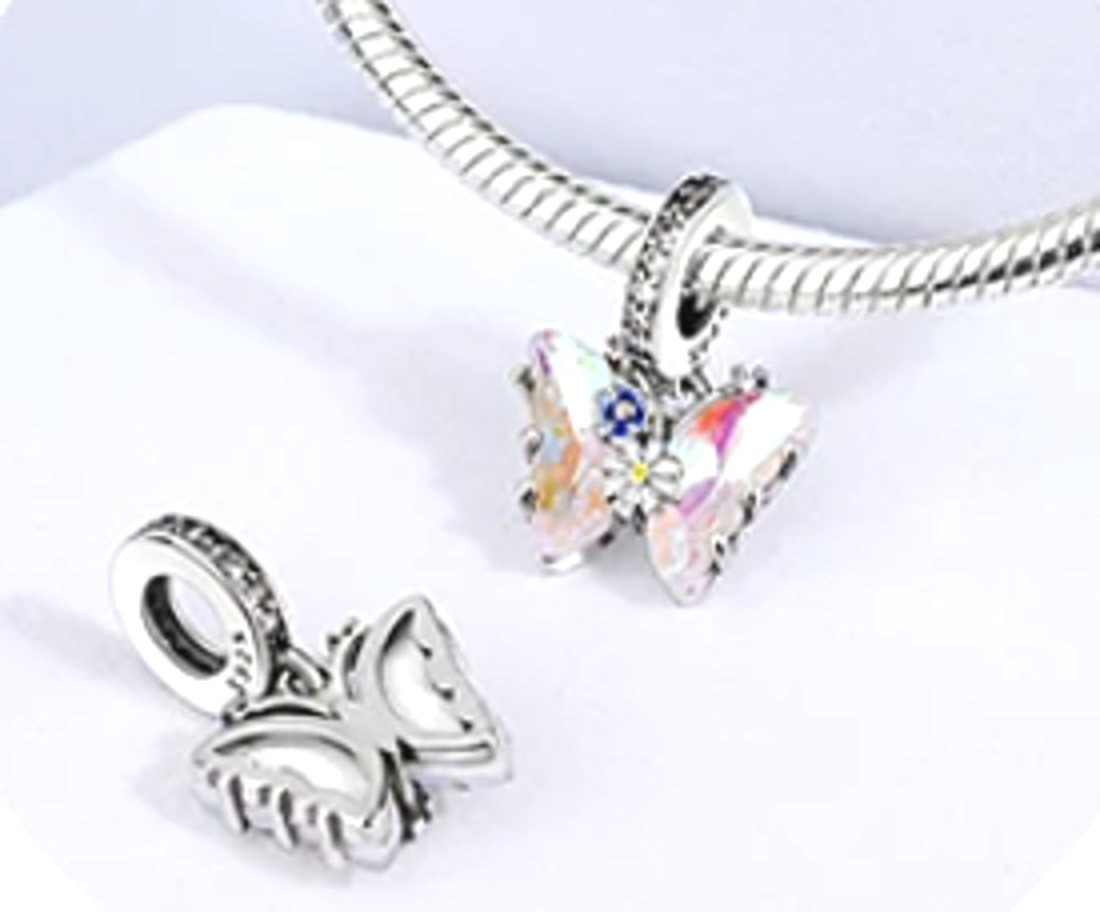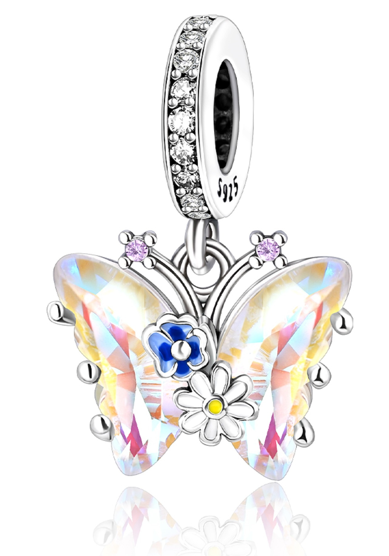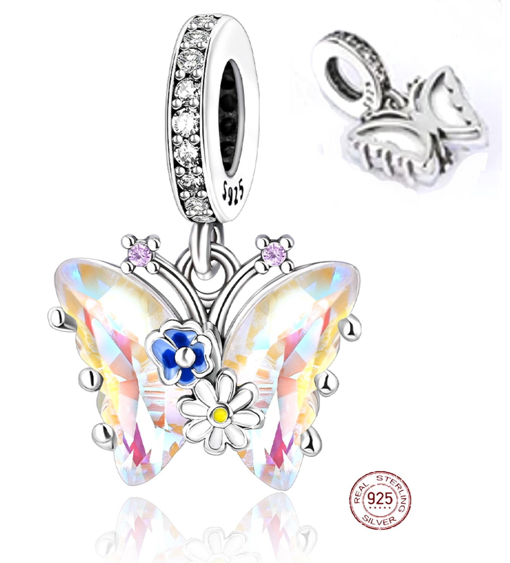 Charm Sterlingové stříbro 925 Motýl - květiny, přívěsek na náramek zvíře