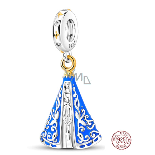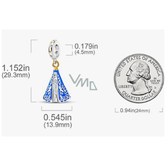 Hlavní patronka Brazílie, Panna Maria z Aparecidy, je slavná hliněná socha a náboženská ikona. Náš přívěsný přívěsek ze sterlingového stříbra je tvarován tak, aby připomínal katolickou podobiznu, s modrým smaltovaným rouchem a korálkovou korunou. S vyrytým „NS Aparecida“ v odkazu na její brazilskou přezdívku Nossa Senhora Aparecida je smysluplným doplňkem náramku. Můžete jej nosit i jako přívěsek na řetízku.