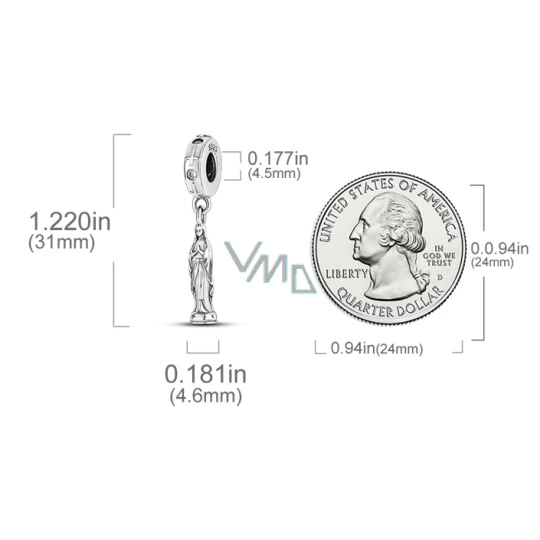 Charm Sterlingové stříbro 925 Náboženská kouzla Panna Marie Lurdská, přívěsek na náramek