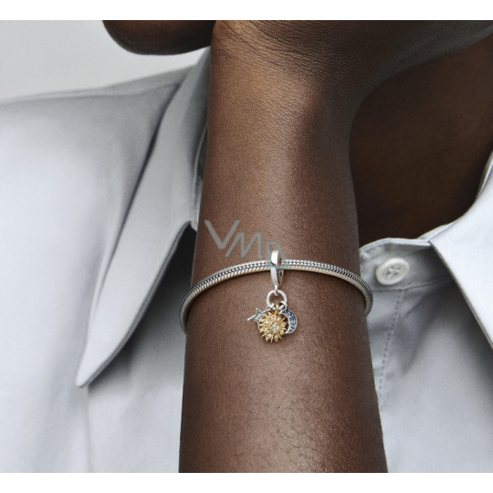 Charm Sterlingové stříbro 925 Nebeské kouzlo se zirkony, slunce, hvězda, půlměsíc, 3v1 přívěsek na náramek vesmír