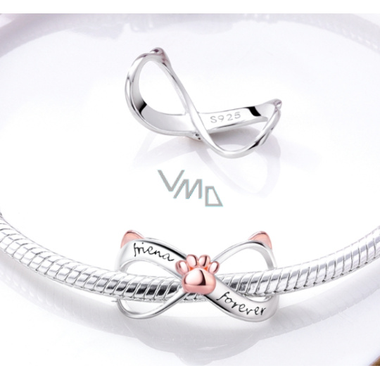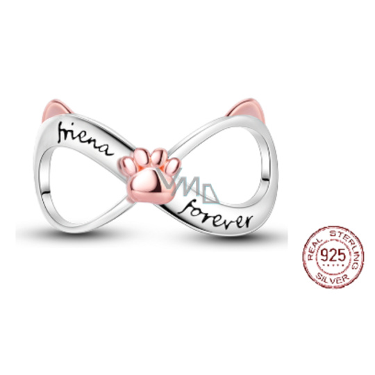 Charm Sterlingové stříbro 925 Nekonečno s tlapkou navždy, přívěsek na náramek mazlíček