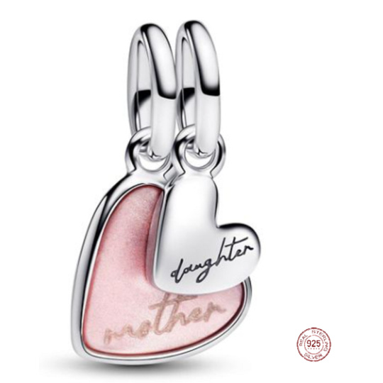 Charm Sterlingové stříbro 925 Nerozbitné pouto matky a dcery, přívěsek na náramek rodina