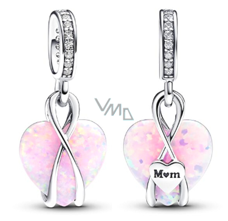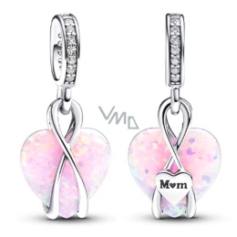 Charm Sterlingové stříbro 925 Opalizující přívěsek se srdcem pro maminku, přívěsek na náramek láska