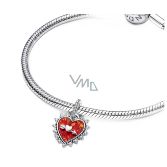 Charm Sterlingové stříbro 925 Opálově červený přívěsek srdce s šipkou, přívěsek na náramek symbol