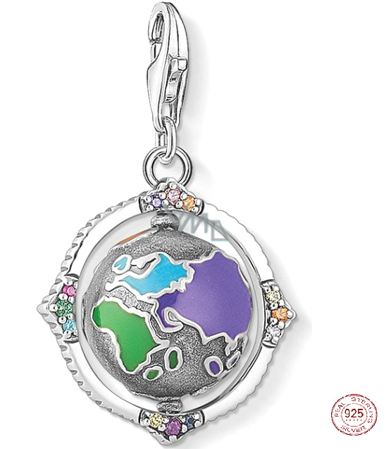 Otočný glóbus je ideálním doplňkem pro všechny světoběžníky. Toto nádherně barevné kouzlo dodá vašim šperkům veselý nádech. Je vyrobeno z oxidovaného, sterlingového, mincovního stříbra a zdobena různobarevným smaltem a Zirkony.