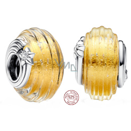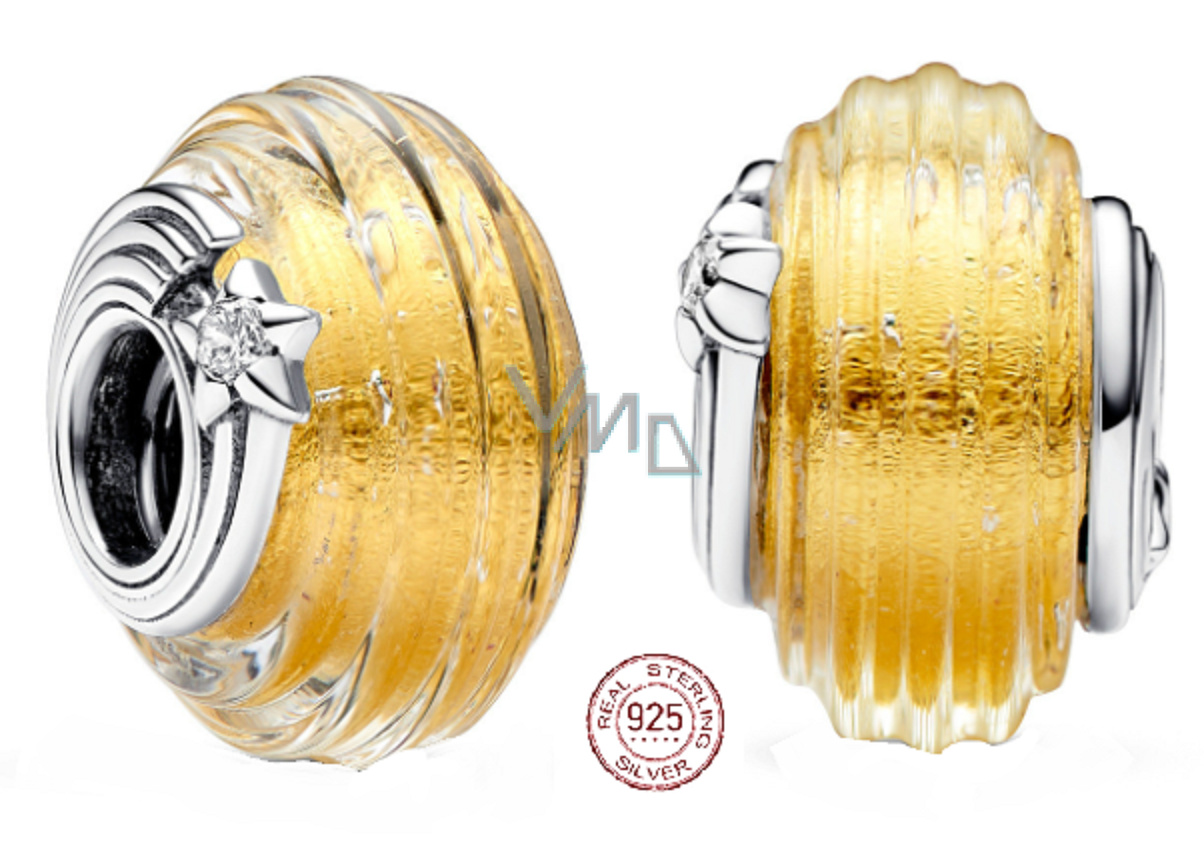 Tento třpytivý přívěsek je předurčen k tomu, aby se stal hvězdou vašeho náramku. Vyroben z rýhovaného průhledného skla Murano, je to jeden z nejjasnějších stříbrných přívěsků sváteční sezóny. Stříbrné jádro září ještě jasněji díky vrstvě 24k zlaté fólie. Se dvěma kameny kubické zirkonie zasazenými do tvaru padající Hvězdy v blízkosti jádra, toto kouzlo dodává druh třpytu, který je obvykle vyhrazen pro blikající Hvězdy na noční obloze.