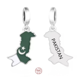 Charm Sterlingové stříbro 925 Pákistán vlajka - houpající se mapa, přívěsek na náramek cestování