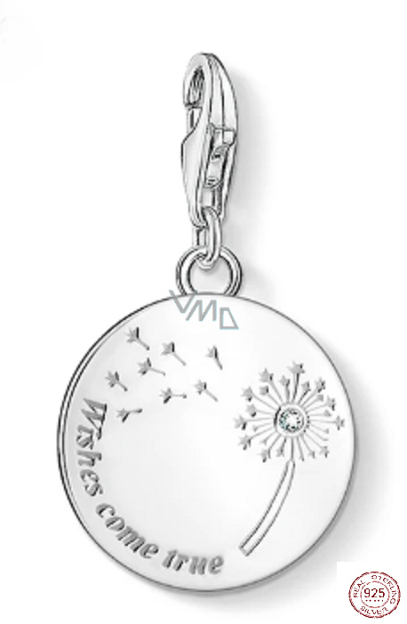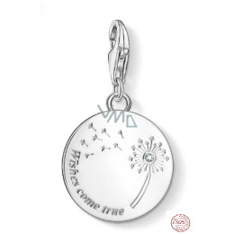 Splňte si přání – semínka filigránově ryté pampelišky jsou lehká a bezstarostná, když létají vzduchem jako malé padáčky a plní sny. Jsou vyryty v medailonku ze sterlingového stříbra 925 spolu s textem: "Wishes come true" - přání se plní. Obdarujte blízkého člověka tímto originálním přívěskem.