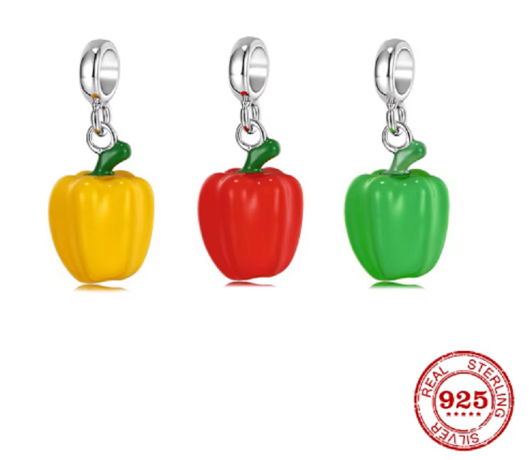 Charm Sterlingové stříbro 925 Paprika zelená, přívěsek na náramek jídlo