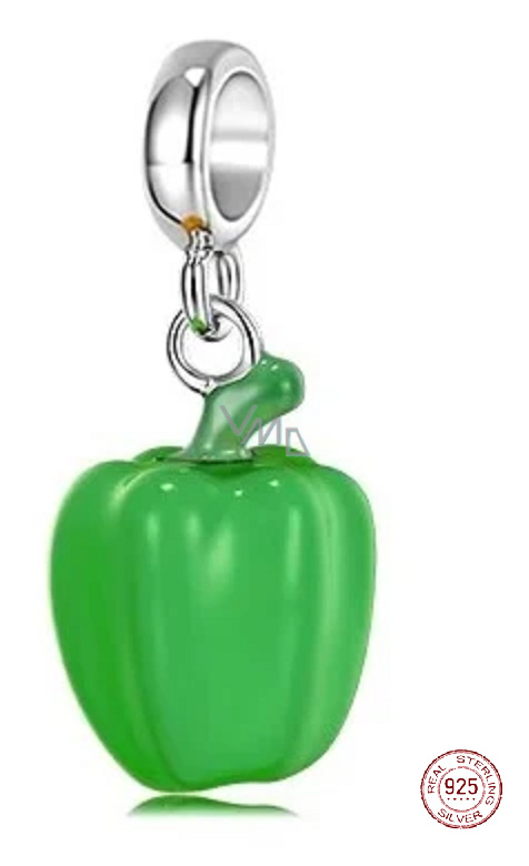 Roztomilý přívěsek znázorňující zelenou papriku je vyroben z kvalitního stříbra a smaltu v zelené barvě. Máte rádi zeleninu? Tím pádem je tento přívěsek pro vás jako dělaný! Obdarujte sebe nebo své blízké a doplňte svůj náramek o další parádní a originální kousek.