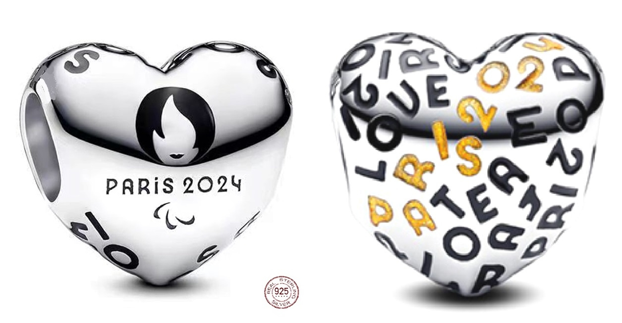 Korálek ve tvaru srdce ze sterlingového stříbra 925 s motivem Olympiády 2024 v Paříži má přední stranu zdobenou černým smaltem, plamínkem a gravírováním "Paris 2024". Zadní strana je zdobena písmeny z pozlaceného stříbra a černého smaltu.