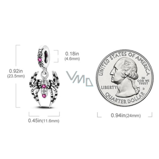 Charm Sterlingové stříbro 925 Pavouk, Spider, černá vdova s růžovými a bílými zirkony, přívěsek na náramek zvíře