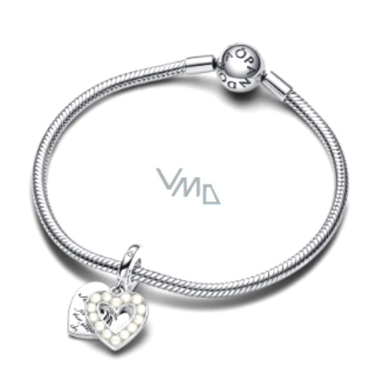 Charm Sterlingové stříbro 925 Perleťové bílé srdce 2v1, přívěsek na náramek rodina