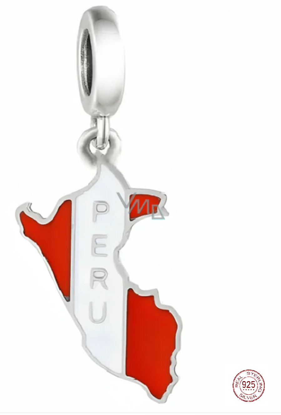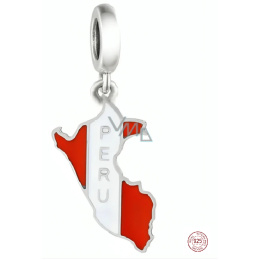 Charm Sterlingové stříbro 925 Peru vlajka - houpající se mapa, přívěsek na náramek cestování
