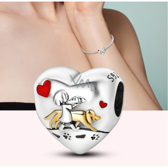 Charm Sterlingové stříbro 925 Pes a já - spojte se po celou cestu, korálek na náramek mazlíček