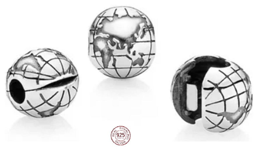 Charm Sterlingové stříbro 925 Planeta Země, stopper, klipový korálek na náramek cestování