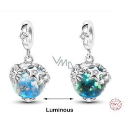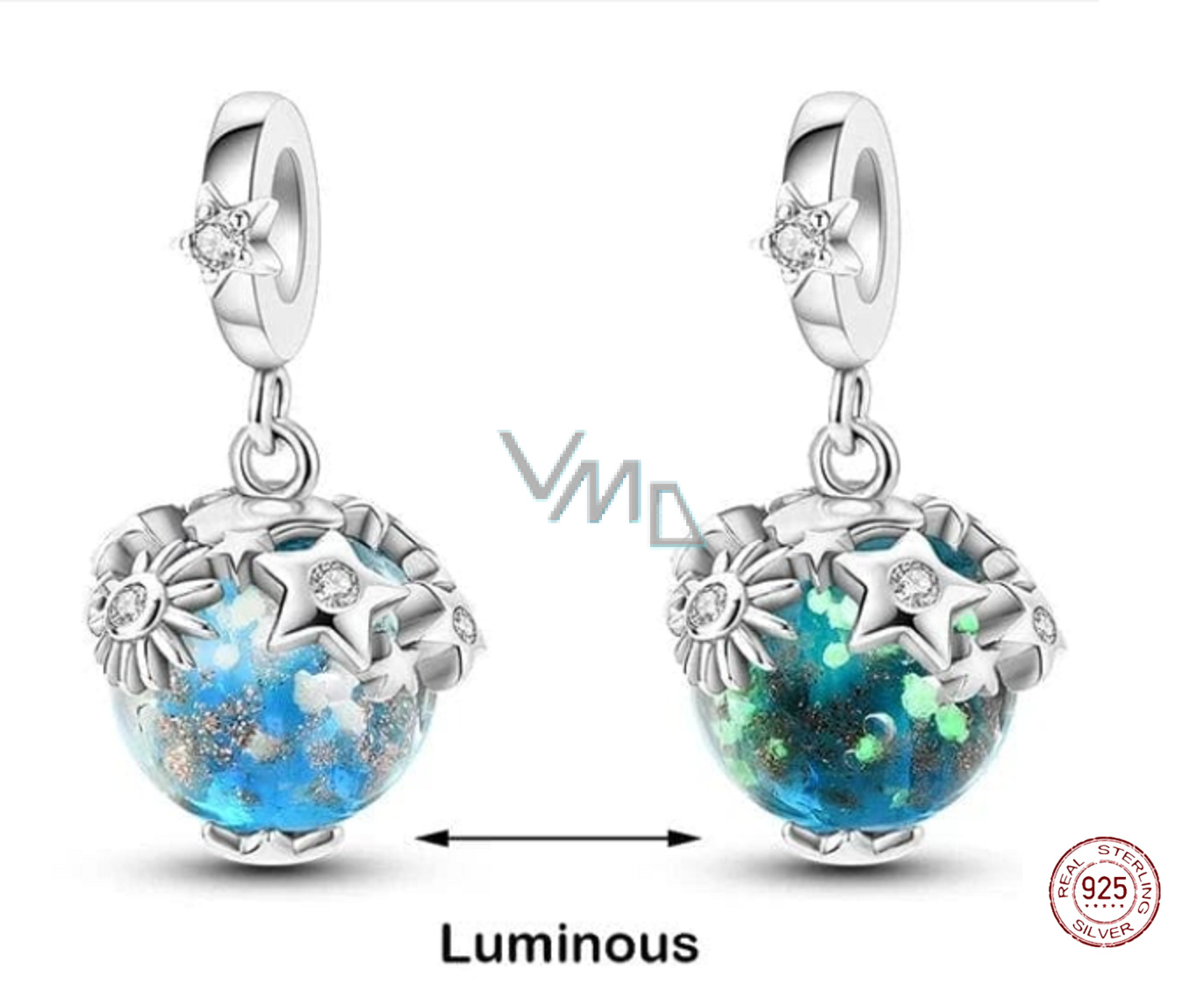 Charm Sterlingové stříbro 925 Planeta Země - záře v temné planetě, přívěsek na náramek vesmír