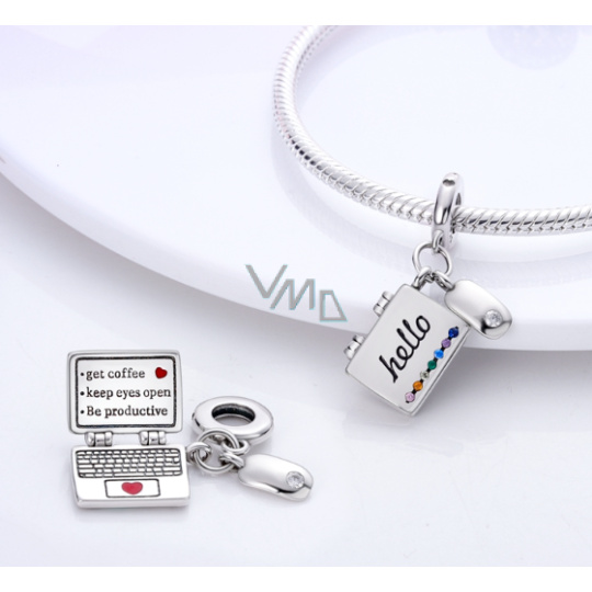 Charm Sterlingové stříbro 925 Počítač + myš, zirkony, 2v1 otevírací přívěsek na náramek zájmy