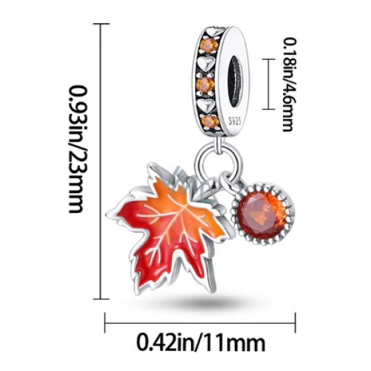 Charm Sterlingové stříbro 925 Podzimní nálada, 2v1 list a kaštan příroda