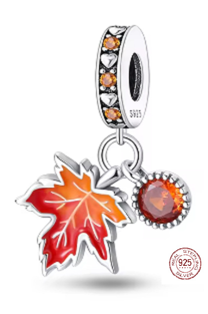Charm Sterlingové stříbro 925 Podzimní nálada, 2v1 list a kaštan příroda