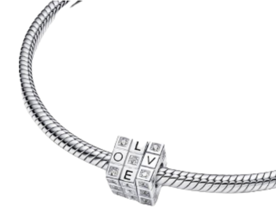 Charm Sterlingové stříbro 925 Pohyblivá hrací kostka, korálek na náramek láska