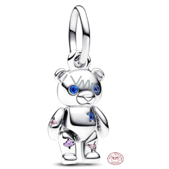 Charm Sterlingové stříbro 925 Pohyblivý medvídek s modrýma očima, přívěsek na náramek zvíře