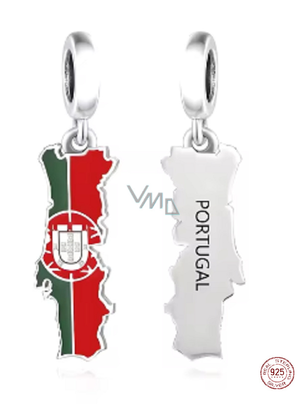 Charm Sterlingové stříbro 925 Portugalsko vlajka - houpající se mapa, přívěsek na náramek cestování