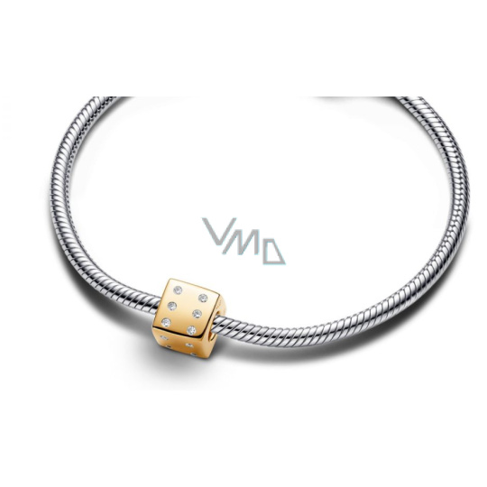 Charm Sterlingové stříbro 925 Pozlacená kostka + umělý zirkon, korálek na náramek symbol