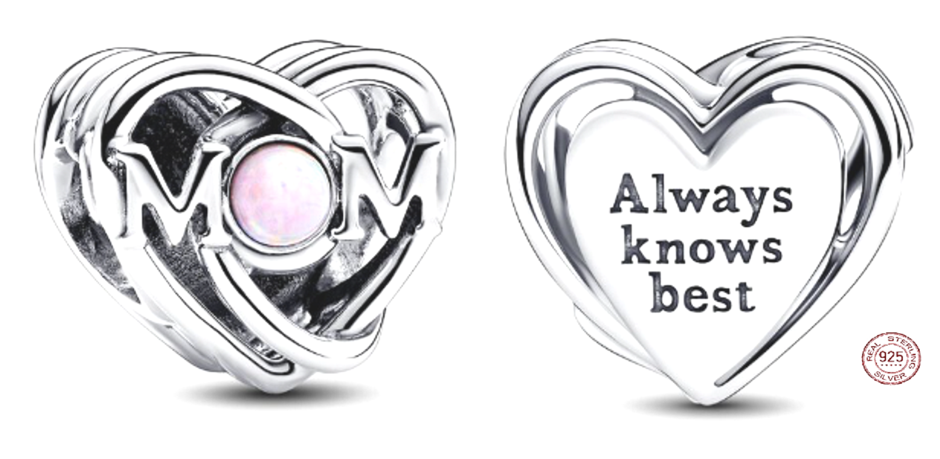 Ukažte svou lásku pomocí prolamovaného korálku, srdečného kousku vytvořeného ze sterlingového stříbra. Tento korálek pro maminky zachycuje podstatu mateřství. Růžový opál dodává nádech elegance a zářivosti. S písmeny „Máma“ na jedné straně a rytinou s nápisem „Vždy ví nejlépe“ na druhé straně je tento korálek zábavnou poctou moudrosti mateřství. Nechte korálek oslavit mnohostrannou krásu mateřských pout, která jí dá vědět, jak moc pro vás její názor znamená.