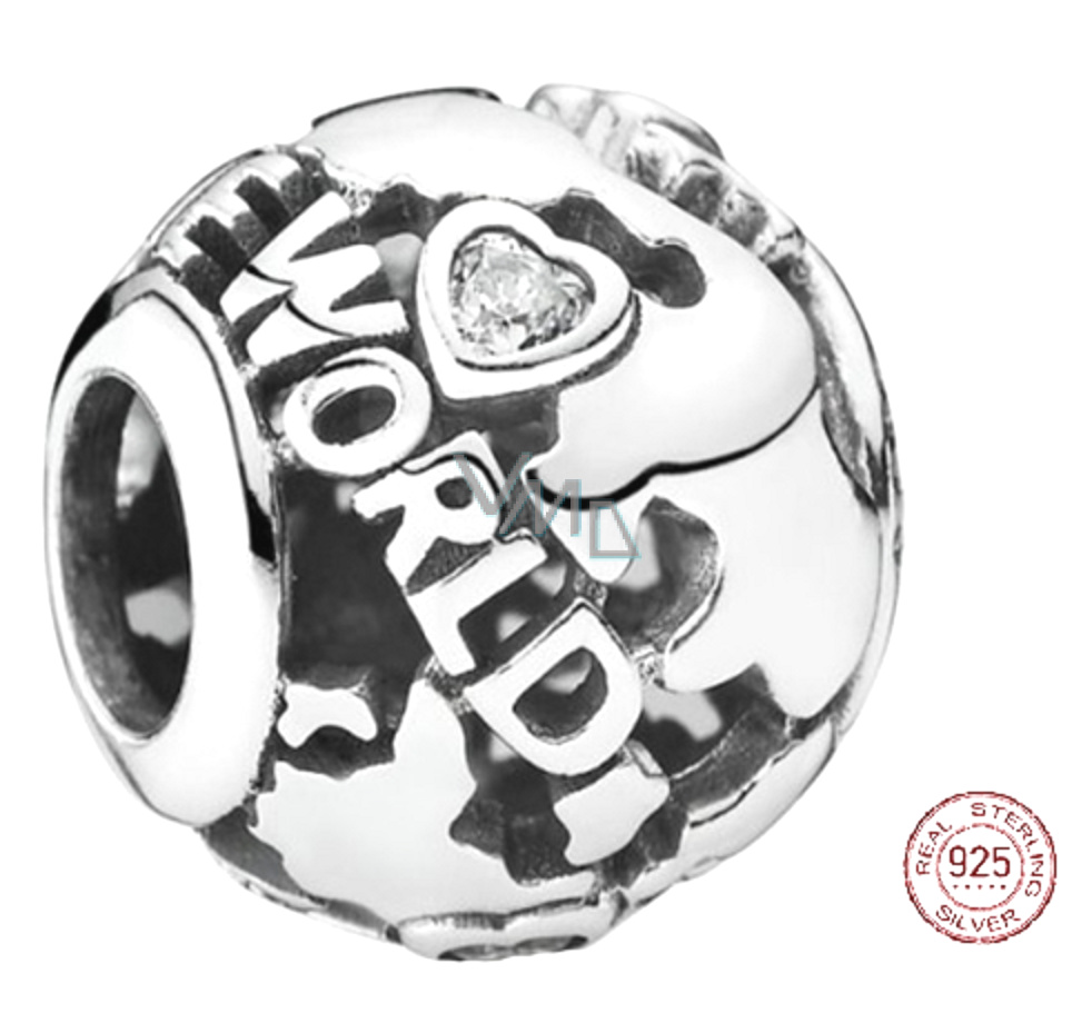 Charm Sterlingové stříbro 925 Prolamované světové kouzlo, korálek na náramek cestování