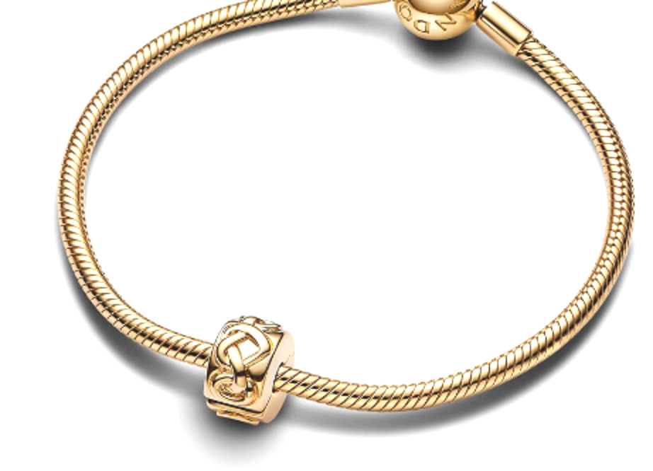 Jednoduché, ale nápadné klipové kouzlo z pozlaceného sterlingového stříbra 925 je zdobeno řadou vázaných srdíček. Design se vyznačuje kombinací ikonického srdce a klasického milostného uzlu, který dodává kousku extra emocionální přitažlivost. Přívěsek je jemně pozlacený 14karátovým zlatem je ideální pro přidání srdečného doteku vaší sbírce náramků. Toto přívěšek nemá silikonovou rukojeť, takže bude klouzat, pokud nebude nasazeno na nitě (dvě vyvýšené přepážky přívěšku).