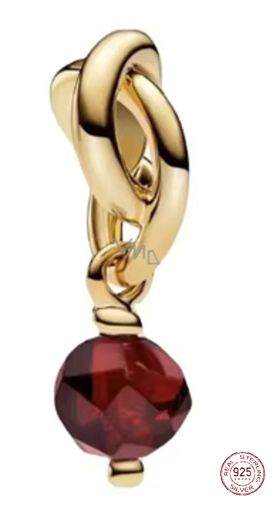 Charm Sterlingové stříbro 925 Propletený fazetovaný kruh věčnosti červený tmavý, přívěsek na náramek symbol leden