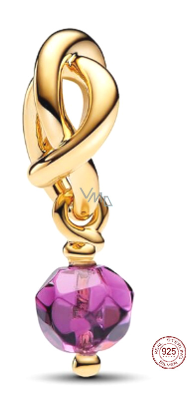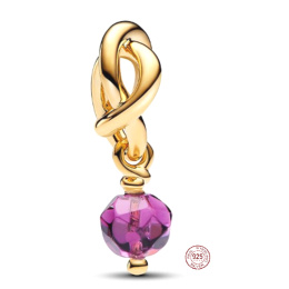 Charm Sterlingové stříbro 925 Propletený fazetovaný kruh věčnosti fialový, přívěsek na náramek symbol únor