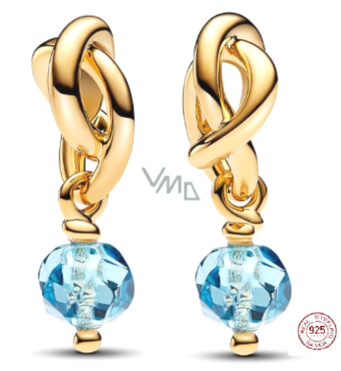 Charm Sterlingové stříbro 925 Propletený fazetovaný kruh věčnosti modrý světlý, přívěsek na náramek symbol březen
