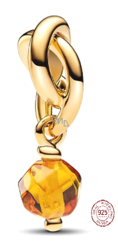 Charm Sterlingové stříbro 925 Propletený fazetovaný kruh věčnosti oranžový, přívěsek na náramek symbol listopad