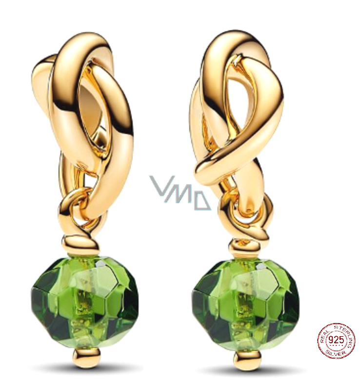 Charm Sterlingové stříbro 925 Propletený fazetovaný kruh věčnosti zelený světlý, přívěsek na náramek symbol srpen