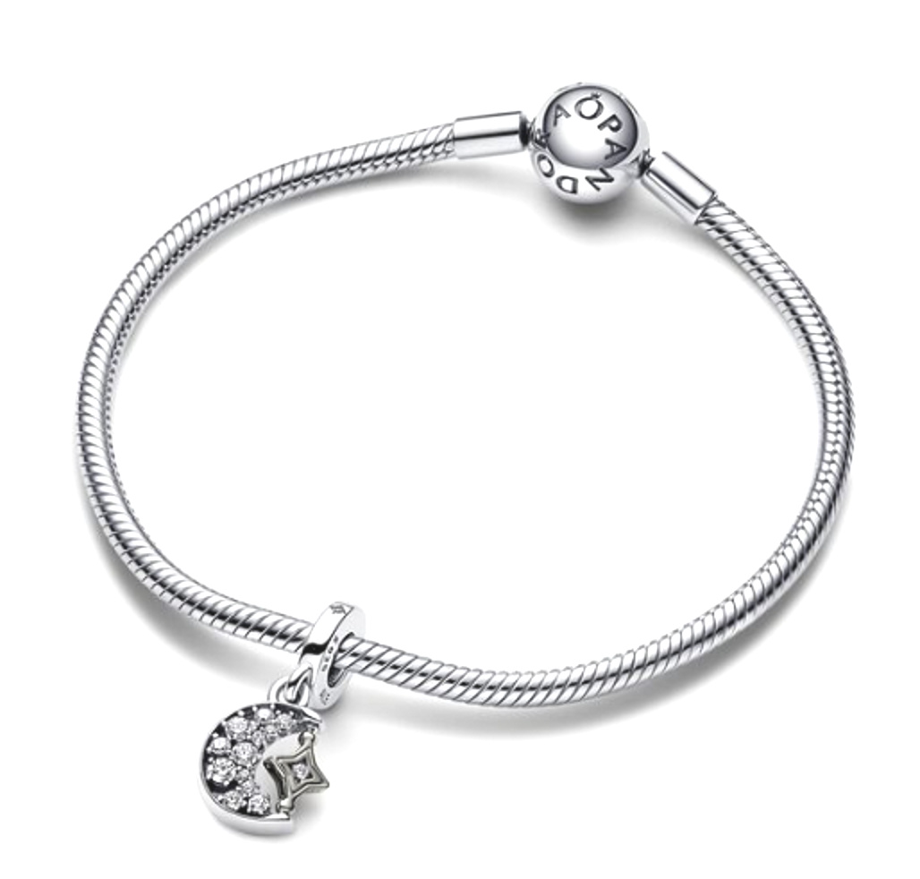 Charm Sterlingové stříbro 925 Půlměsíc a otáčecí hvězda, přívěsek na náramek vesmír