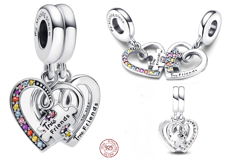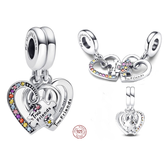 Charm Sterlingové stříbro 925 Puzzle přátelství, dělitelný 2v1 přívěsek na náramek, láska