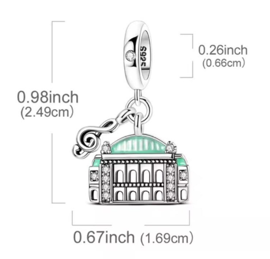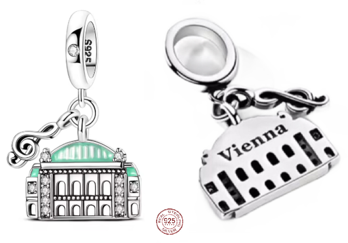 Charm Sterlingové stříbro 925 Rakousko Vídeňská státní opera 2v1 přívěsek na náramek, elegance hudby a noblesy, cestování