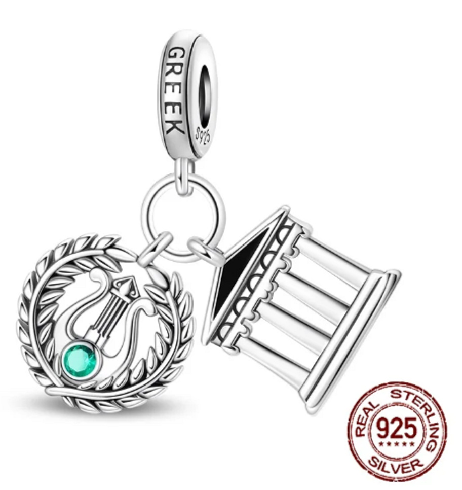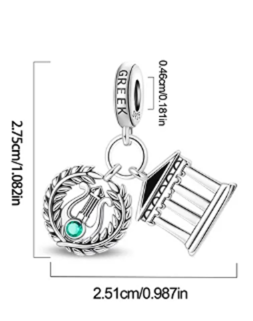Charm Sterlingové stříbro 925 Řecko | Parthenon & lyra, harmonie a síla antiky, přívěsek na náramek cestování