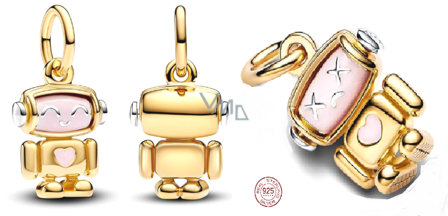 Charm Sterlingové stříbro 925 Robot s otáčivým obličejem, přívěsek na náramek přátelství