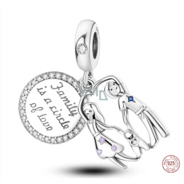 Charm Sterlingové stříbro 925 Rodina je kruh lásky, přívěsek na náramek rodina