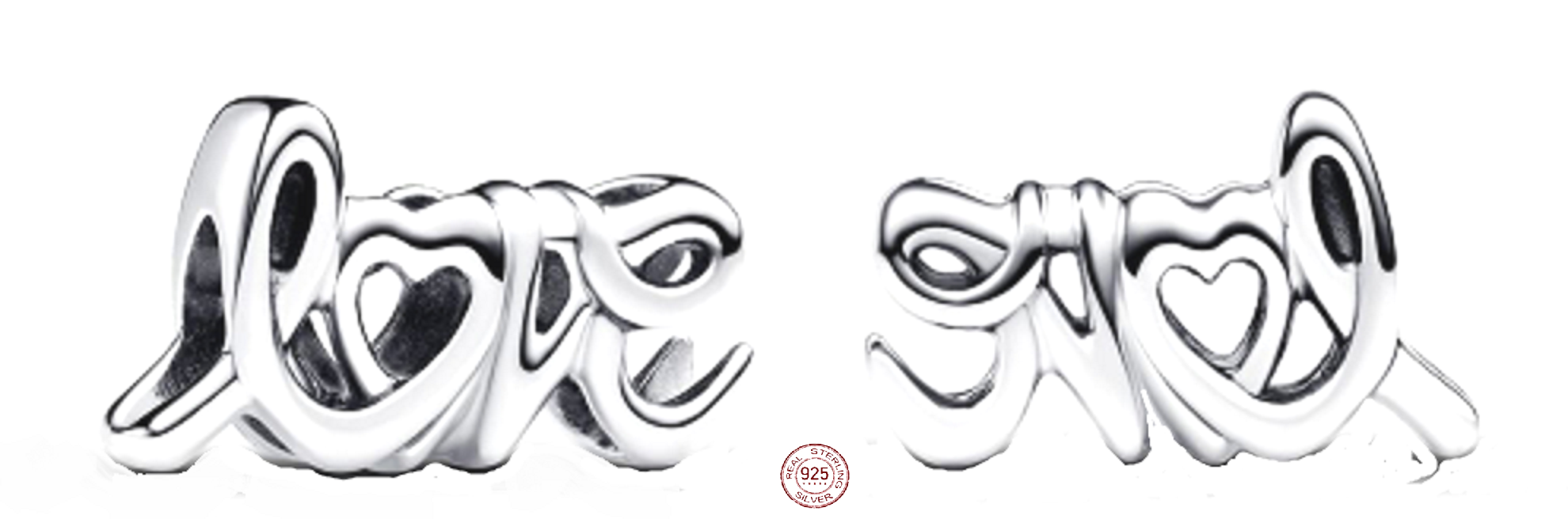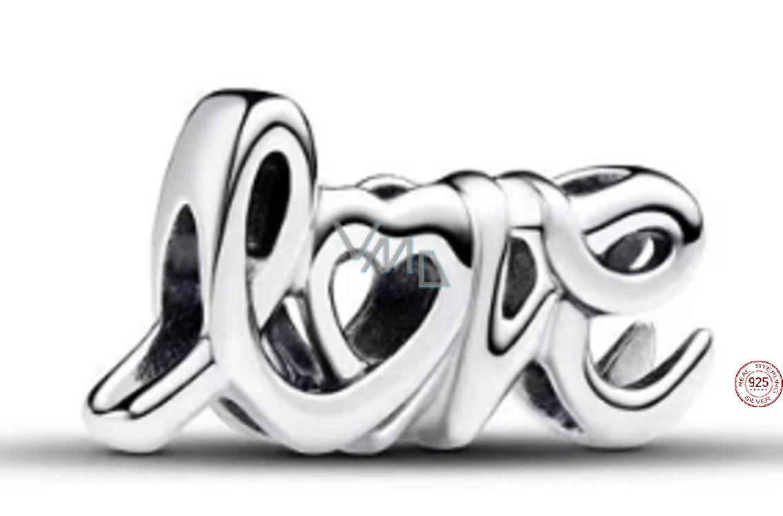 Charm Sterlingové stříbro 925 Ručně psaná láska, korálek na náramek láska
