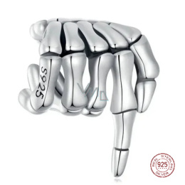 Charm Sterlingové stříbro 925 Ruka kostlivce, korálek na náramek Halloween
