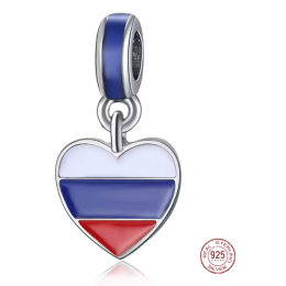 Charm Sterlingové stříbro 925 Rusko vlajka – trikolóra ve tvaru srdce, přívěsek na náramek cestování