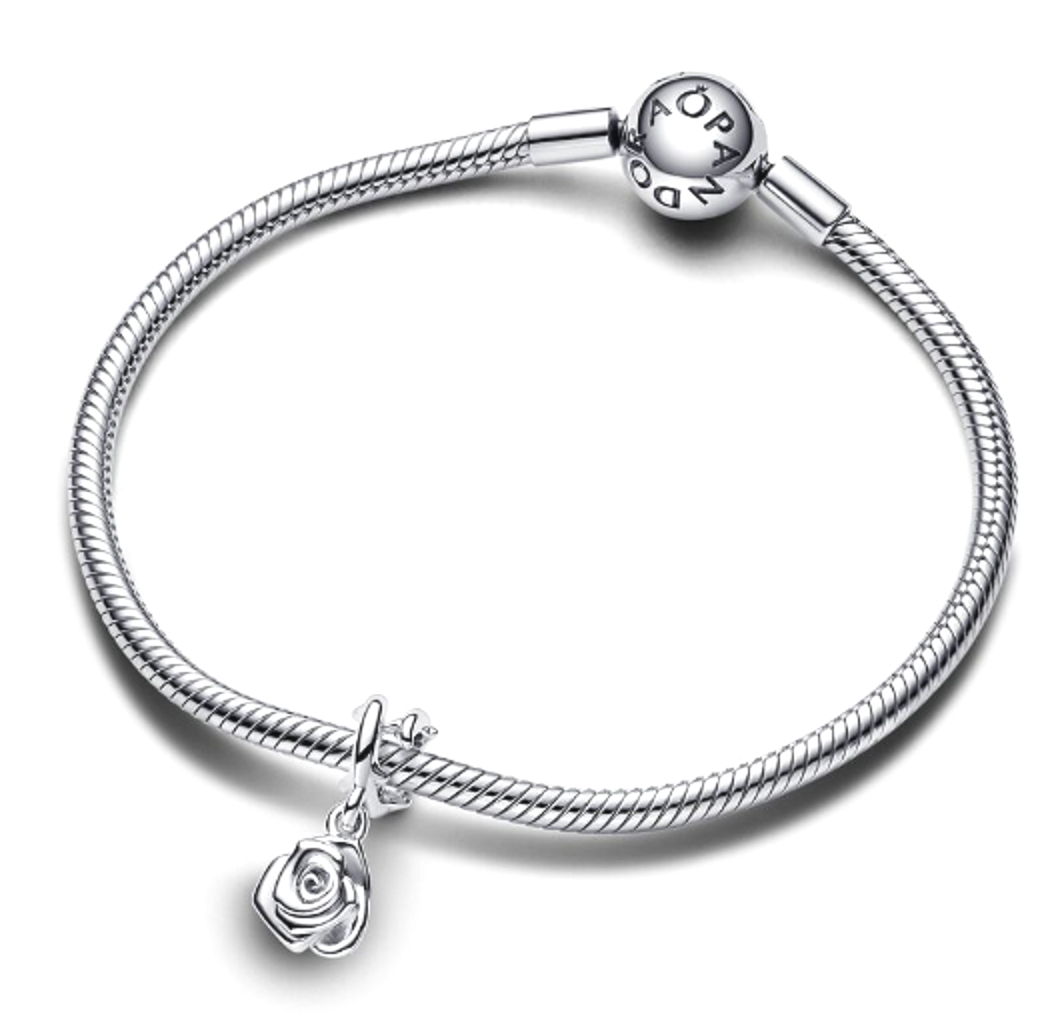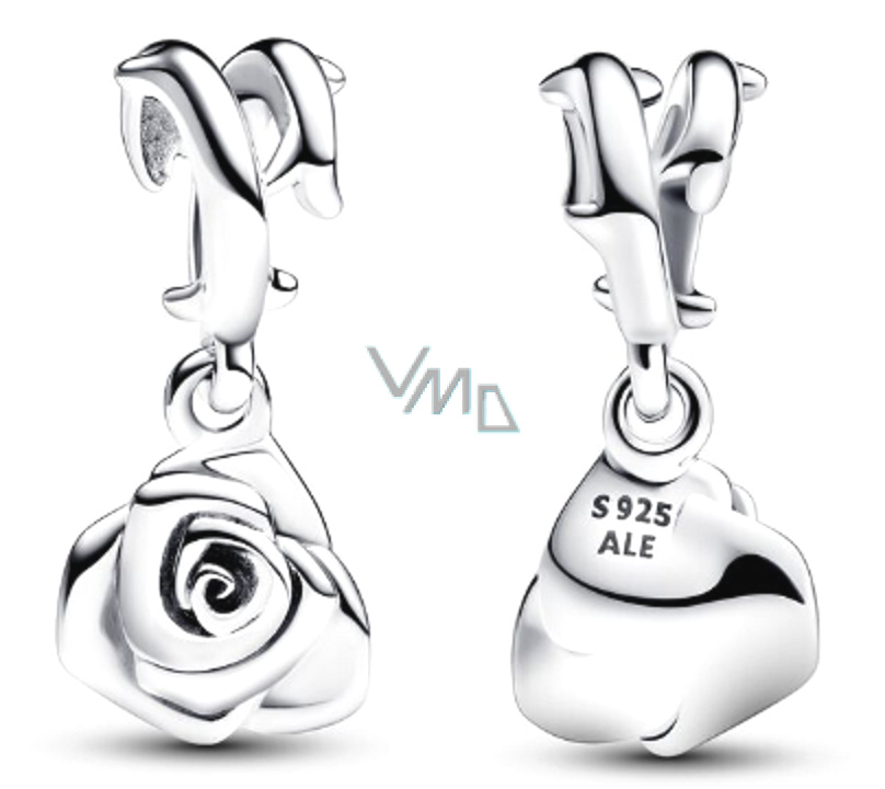 Charm Sterlingové stříbro 925 Růže v květu, přívěsek na náramek květina