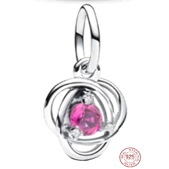 Charm Sterlingové stříbro 925 Růžový kruh věčnosti říjen, přívěsek na náramek symbol