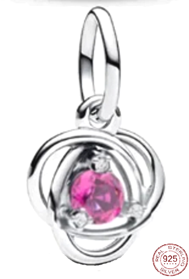 Charm Sterlingové stříbro 925 Kruh věčnosti Růžový, říjen, přívěsek na náramek symbol